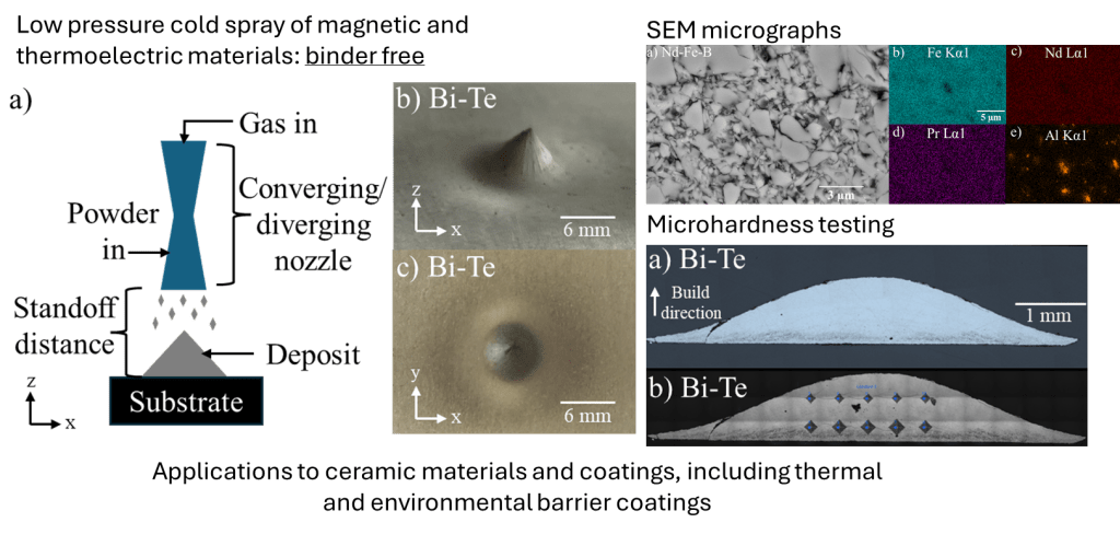 3/3/25: Our conference manuscript “Evaluation of Additively Manufactured Nd–Fe–B and Bi–Te via Tailored-Feedstock Low-Pressure Cold Spray” was published in TMS Proceedings, a graphical overview is below: